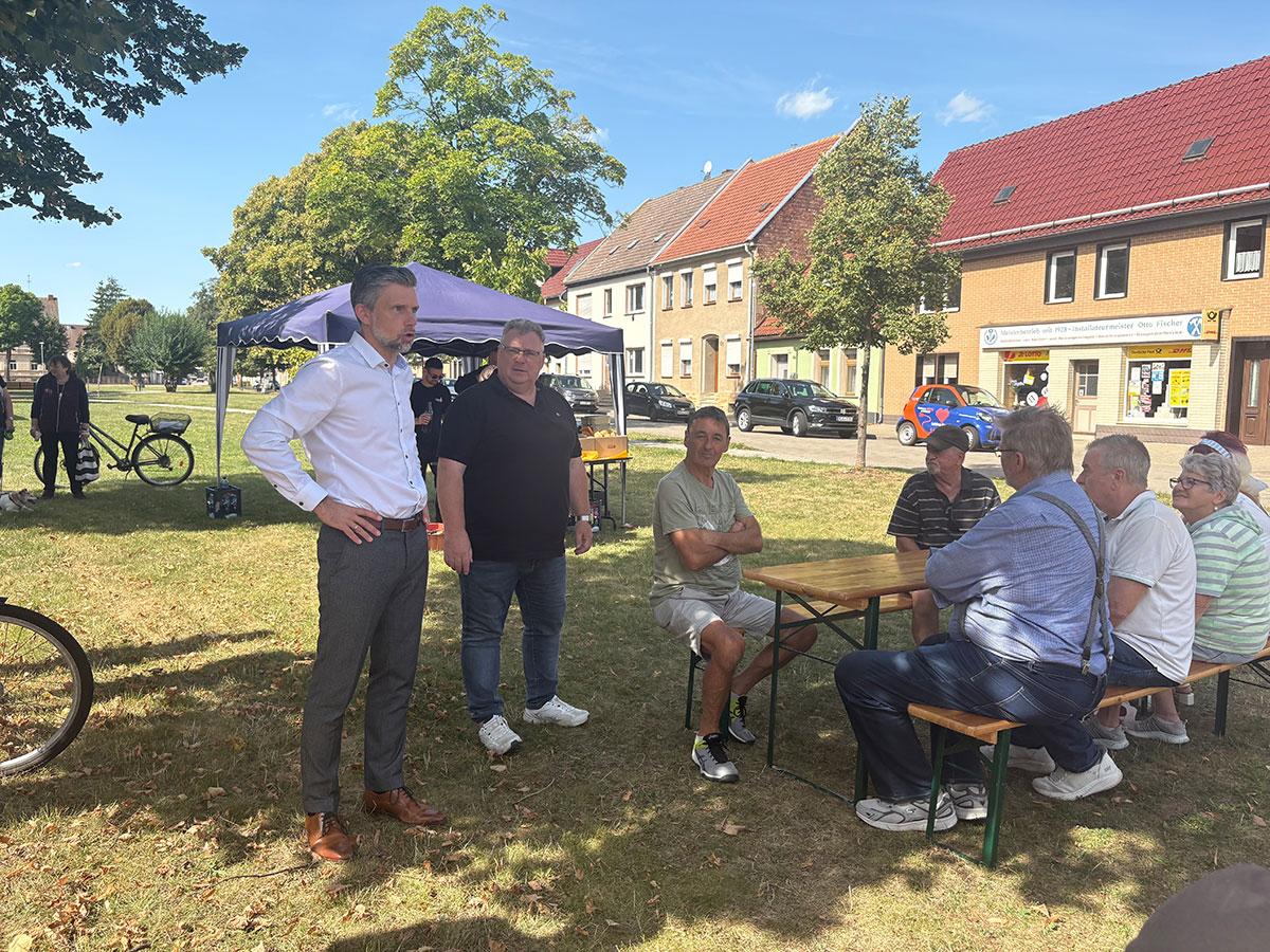 Bei Thüringer Würstchen, einem herzlichen Handschlag und schönen Begegnungen mit den Einwohnern haben Bürgermeister Michael Kruse und der Geschäftsführer der Stadtwerke Staßfurt, Eugen Keller, die Freude über diesen Meilenstein geteilt.